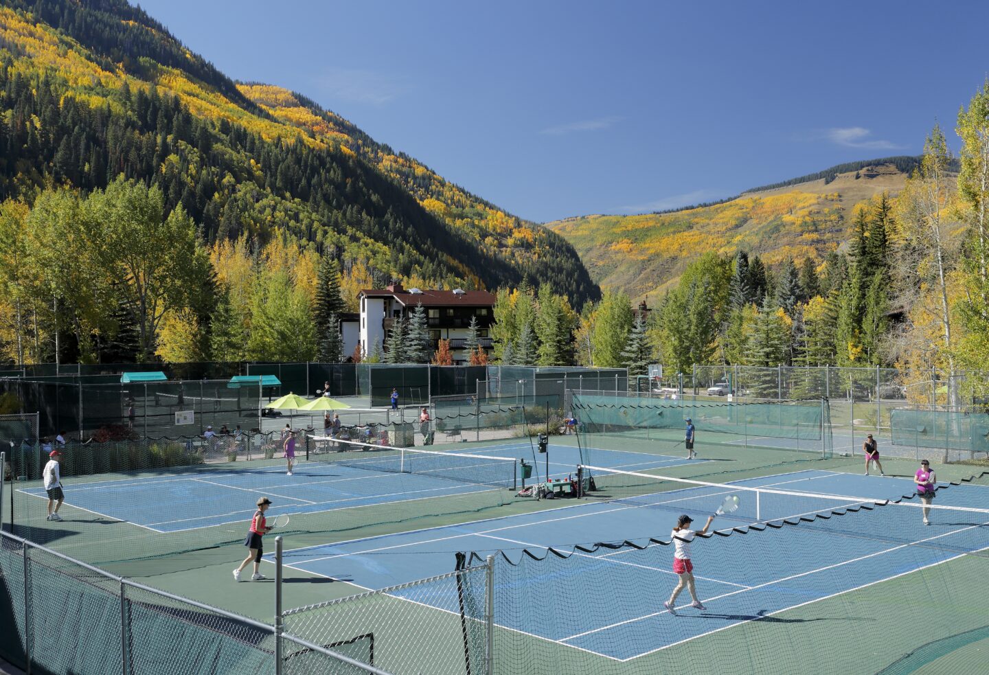 Play with a view – our seven tennis courts (including three clay courts) and three pickleball courts sit against the breathtaking backdrop of the Gore Range. Open seasonally, typically starting in May and through October, or whenever the snow starts. Court reservations are available within 24 hours of play for resort guests, and rental equipment is on hand for those looking to pick up a new sport or refine their game.